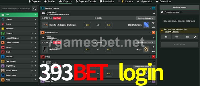 O 393bet login oferece uma grande seleção de opções de apostas em e-sports com probabilidades competitivas